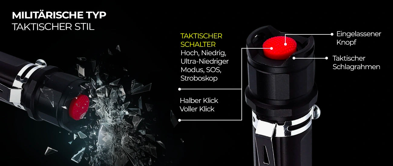Die Heider ZX1 Super Power Zoom Taschenlampe wird weltweit als taktische Taschenlampe verwendet und erfüllt militärische Standards. Mit ihrer zuverlässigen Leistung, selbst bei extremen Wetterbedingungen, ist die ZX1 eine ideale Beleuchtungslösung für Militärpersonal, taktische Einheiten, Polizei und Feuerwehrteams.
