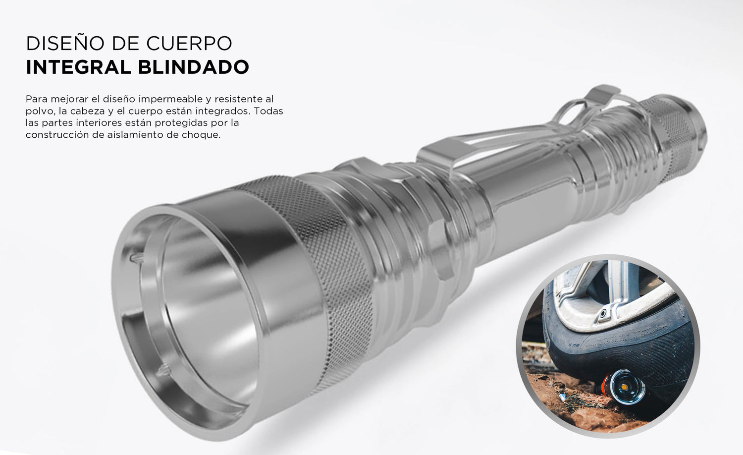 La Heider AGX V4 cuenta con un diseño de cuerpo integrado blindado, lo que significa que su estructura unibody ofrece una protección total contra impactos. Si se cae, se somete a una carga pesada o incluso si se pasa un automóvil por encima, no afectará su funcionamiento. Además, la punta táctica situada en la parte trasera está fabricada con material reforzado y es especialmente útil en situaciones críticas. Está diseñada para romper cristales templados, paneles de madera y otros obstáculos similares, aportando tanto funcionalidad como protección estructural.
