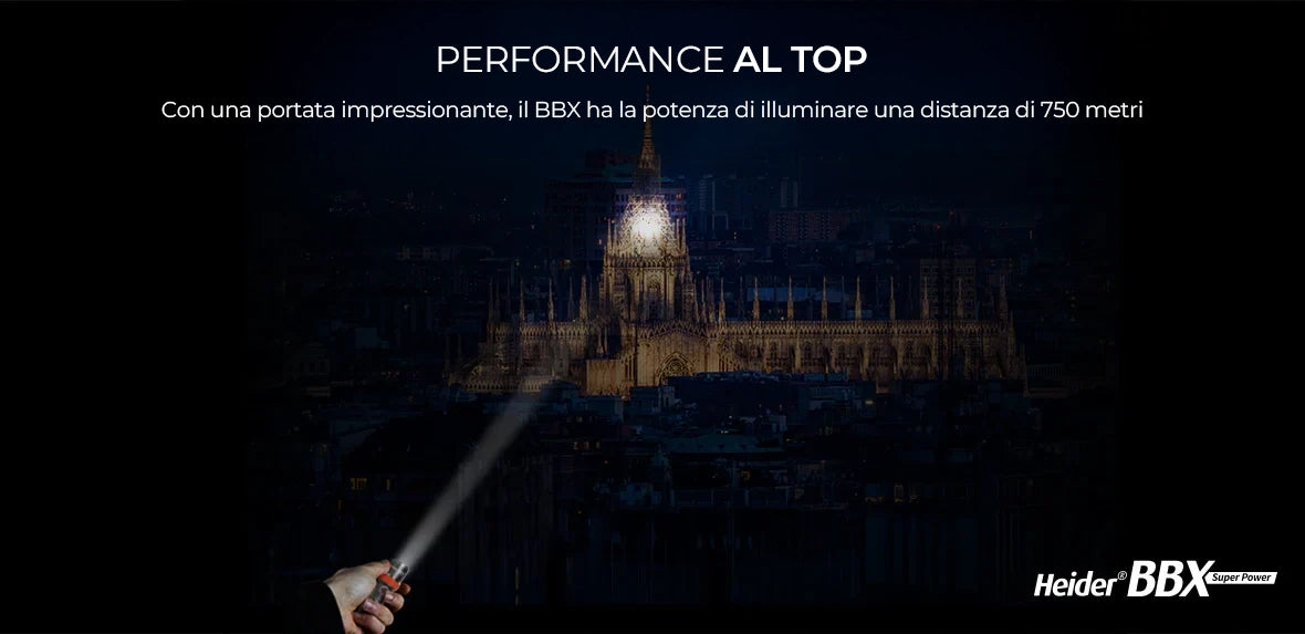 La Heider BBX Super Power è dotata della tecnologia CREE Power LED, abbinata a una lente speciale progettata per i camion. La BBX Super Power offre fino a 220 ore di illuminazione con una singola carica in modalità ultra-bassa. La potenza della Heider BBX Super Power non è una coincidenza; deriva da una filosofia di design di alto livello.