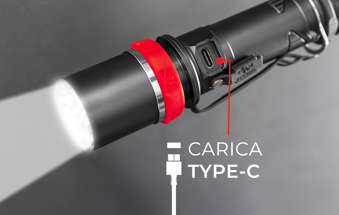 Per caricare la tua torcia Heider, collega semplicemente il cavo USB Type-C incluso alla porta di ricarica della torcia con un adattatore compatibile. Non è necessario rimuovere la batteria durante la ricarica. Grazie alla funzione di ricarica rapida, la tua torcia si caricherà velocemente ed è subito pronta all’uso. In alternativa, puoi rimuovere la batteria e caricarla utilizzando il caricatore SC2.