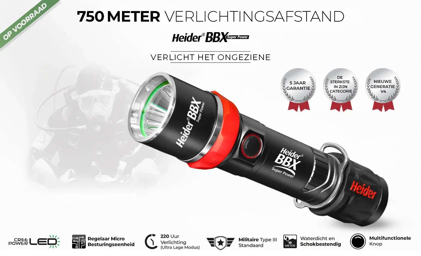 De Heider BBX Super Power v4, biedt ultra-hoge, hoge, normale, lage en ultra-lage helderheidsstanden. Dankzij de geavanceerde zoomfunctie leveren deze standen uitstekende prestaties voor al je activiteiten. Bovendien biedt hij tot 220 uur continue verlichting in de ultra-lage stand.