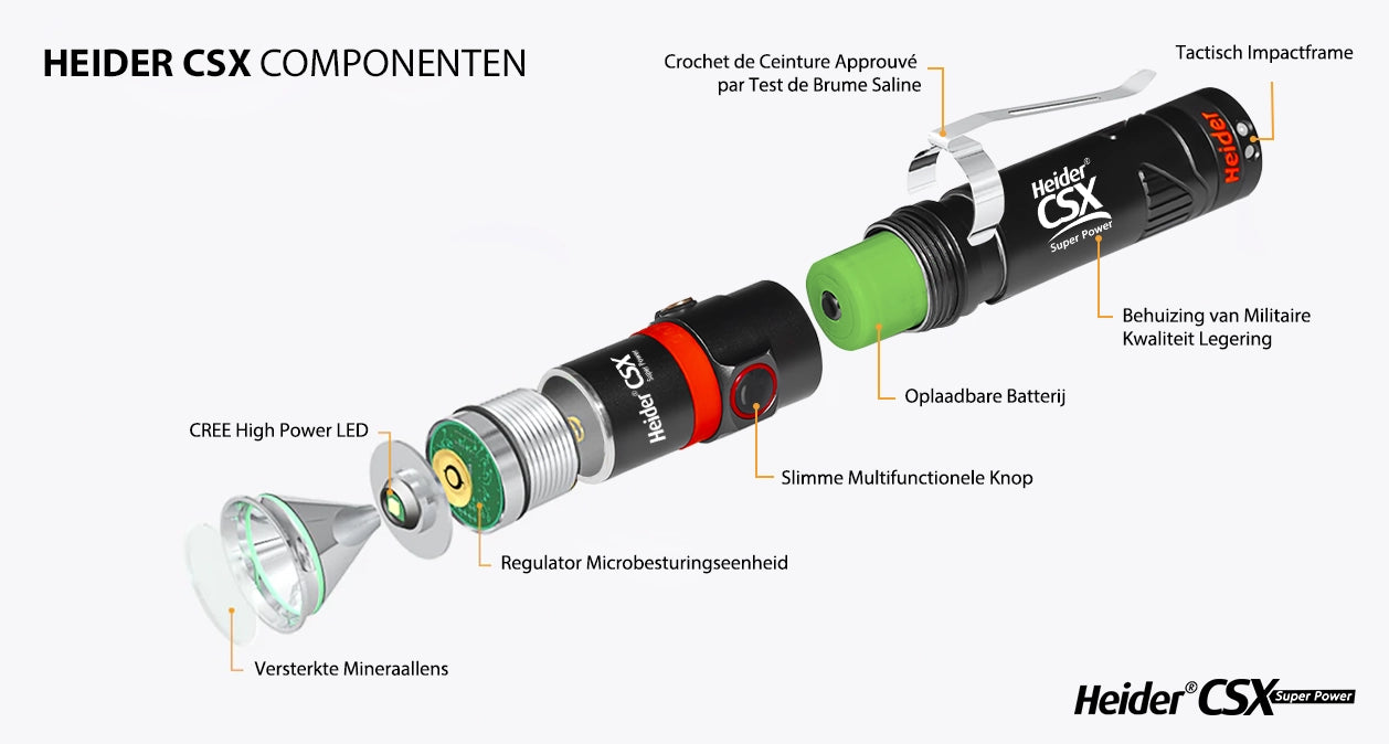 De Heider CSX Super Power is ontworpen om alle externe invloeden te weerstaan. De schokbestendige en waterdichte behuizing van militair geanodiseerd aluminium beschermt de interne componenten van de CSX.