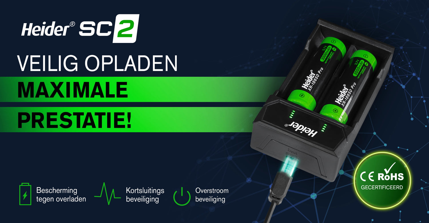 De Heider SC2 is compatibel met oplaadbare batterijen van verschillende groottes. Met zijn brede compatibiliteitsbereik kunt u hem naadloos gebruiken met elk type batterij dat u nodig hebt.