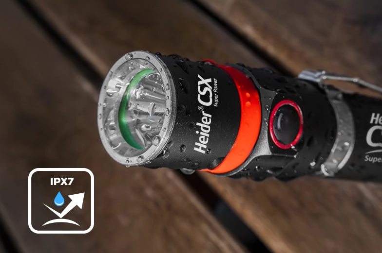 The Heider CSX Super Power is designed to withstand all external factors. The shockproof and water-resistant military-grade anodized aluminum casing of the CSX protects the internal components.
